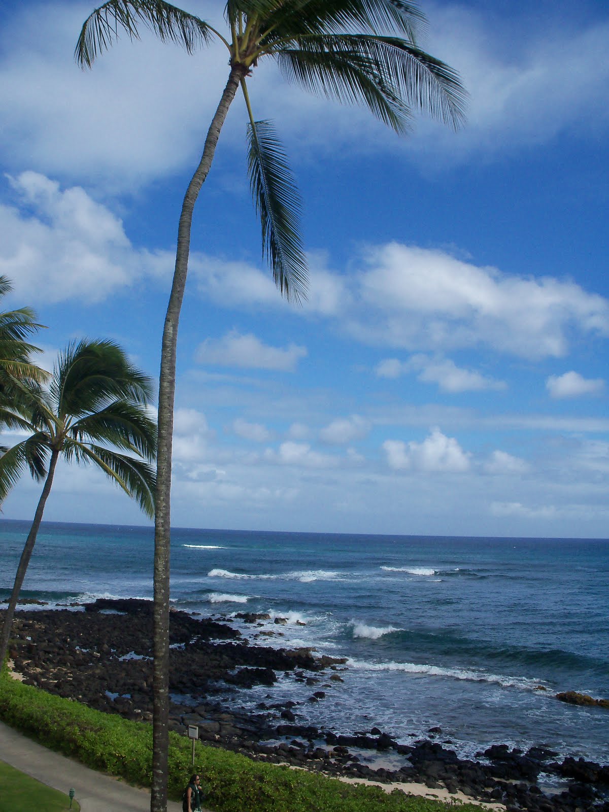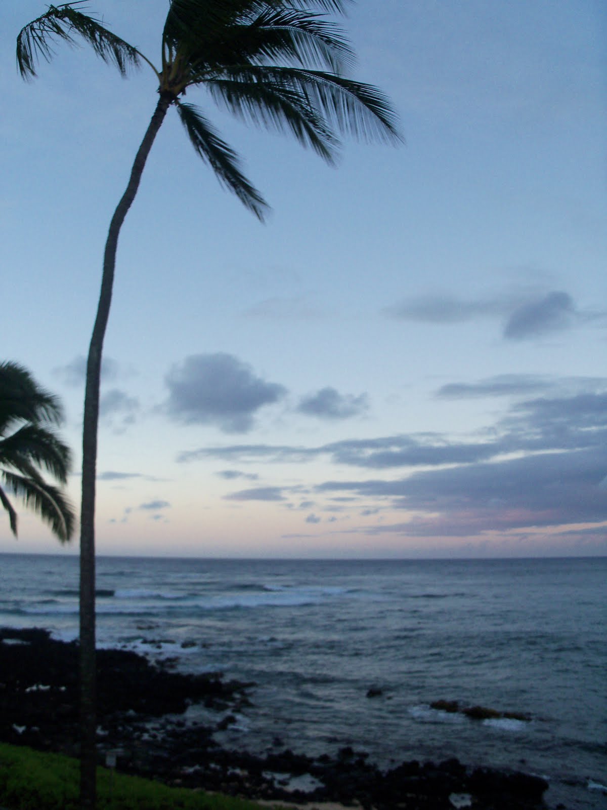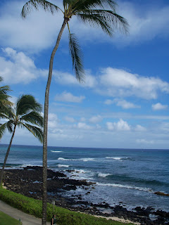 Aloha! I’m back from vacation but am still trying to get back in the groove. I think I like the laid back feel of the islands better than the rush-rush of my everyday world. I spent plenty of time on the beach, just lazing beneath the sun and reading up a storm. I thought I’d share a few pictures of the next few days of our trip. This is one view from our lanai. I love how the same view can have so many different looks. The last was taken early in the morning as the sun was rising. Another midday. And the first was taken just as a storm was blowing through. Storms in Kauai crop up every day but they don’t last long. And so it is with life, eh? Storms crop up but hopefully they don’t last long. But the storms are important because that rain makes the island so lush and beautiful. And the storms in our lives help us to grow strong. If you’re experiencing a storm in your life, I hope it blows over quickly. But mostly I hope you’re having a clear-blue day! Because we all need to enjoy those! Aloha!