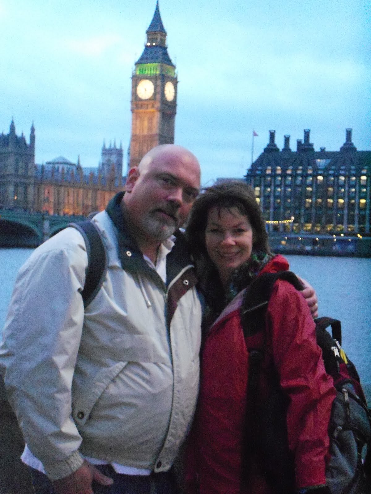 Here’s a picture of hubby and me in London. We could hear Big Ben chiming 6 o’clock.