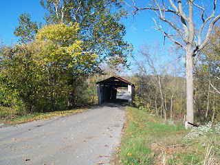 Here are a few pictures of our trip: the cabin where we stayed (nestled in the trees), a covered bridge we traversed (built in the 1850s), a horse and buggy, and beautiful fall colors at Murphin Ridge Inn.
